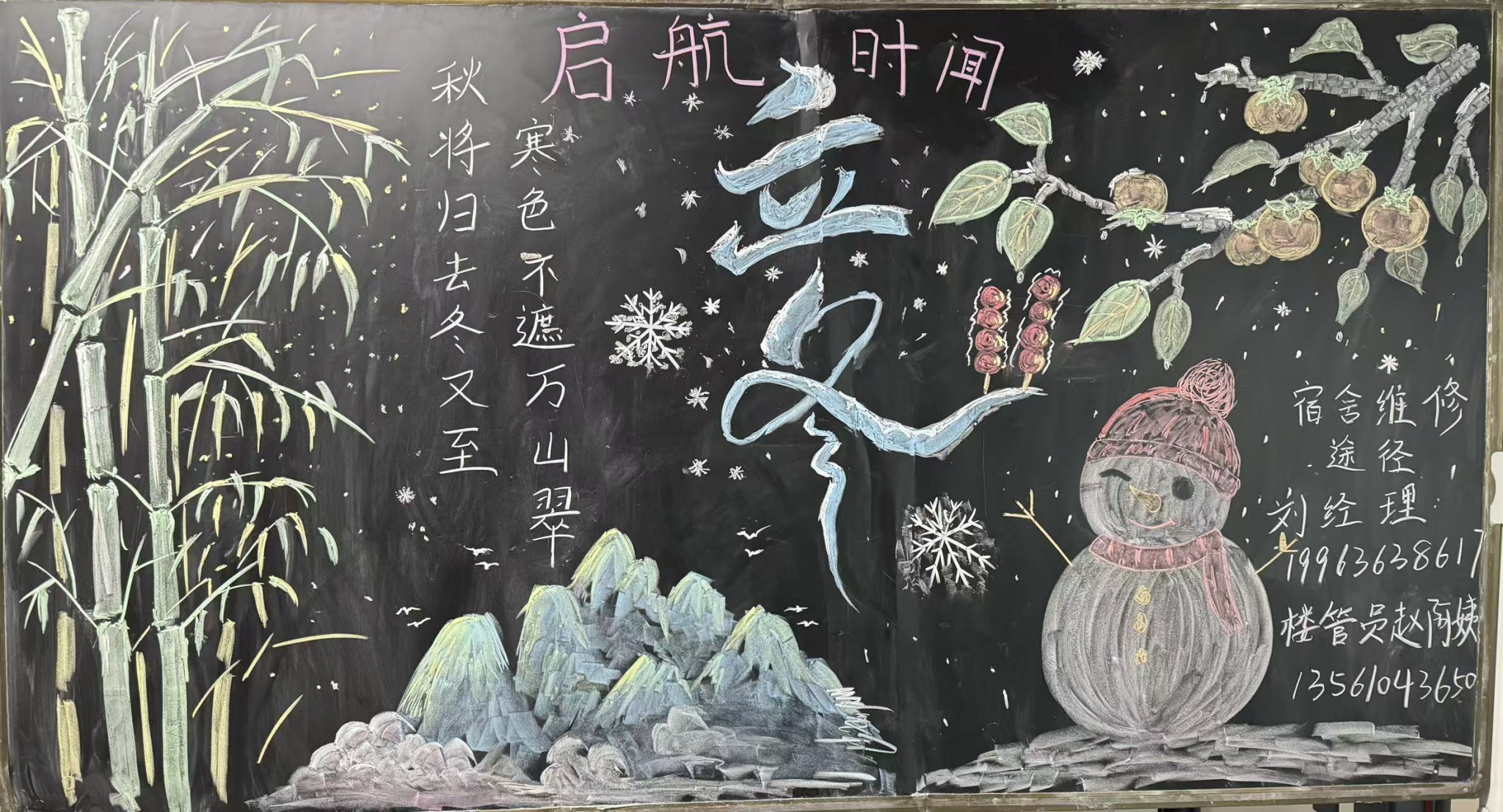 步入启航社区,秋意渐远,冬日的脚步悄然临近。黑板报在季节更迭中换上崭新的内容,也勾勒出“秋将归去冬又至”的诗情,愿大家在冬意渐浓的日子里,既感受到冬日的温柔,也让校园充斥着冬日的柔和,以充盈的状态迎接每一个崭新的明天。