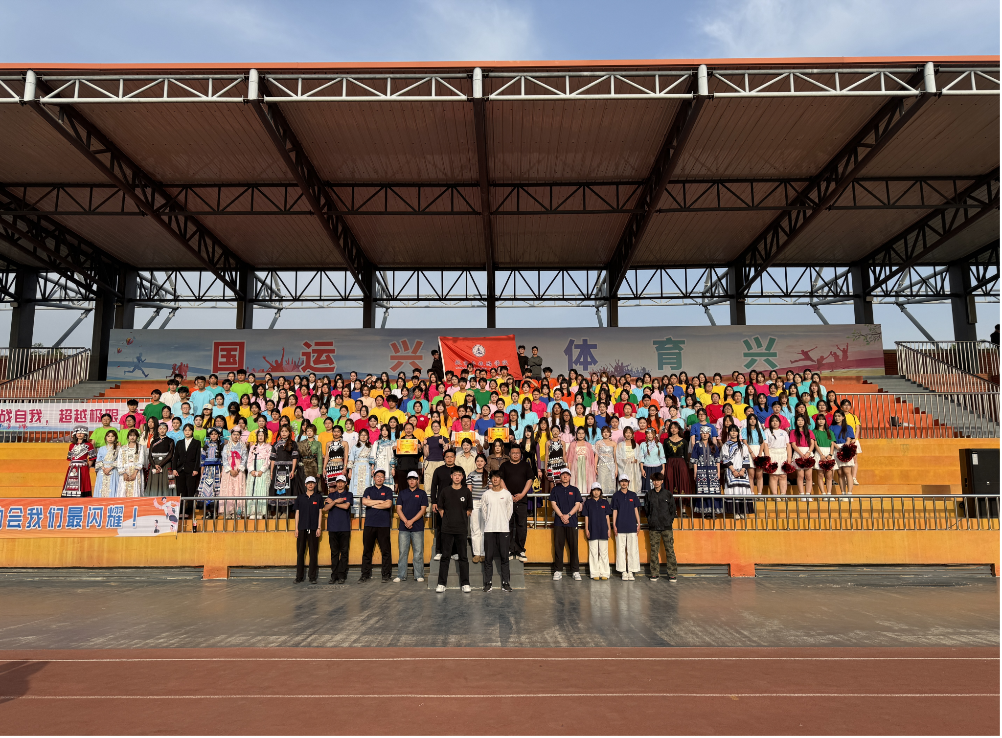 闭幕式上,学院凭借昂扬向上的精神风貌,一举包揽优秀宣传奖、最佳风采奖、精神文明奖三大奖项。这场运动会不止是速度与力量的角逐,更是信念与担当的彰显。航空与旅游学院必将传承赛场之上的拼搏底色,将奋勇争先的姿态融入学习生活,砥砺前行、向阳生长,以昂扬风貌奔赴漫漫前路,绽放属于航旅学子的独特光彩。