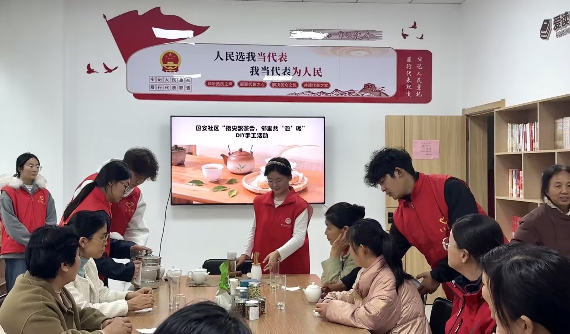 为传承中华优秀传统文化,营造和谐温暖的社区氛围,2025 年 10月30日下午,航空与旅游学院组织志愿者前往国安社区金岭水岸华庭,开展此次“指尖酿茶香,邻里共‘包’暖”志愿服务活动。