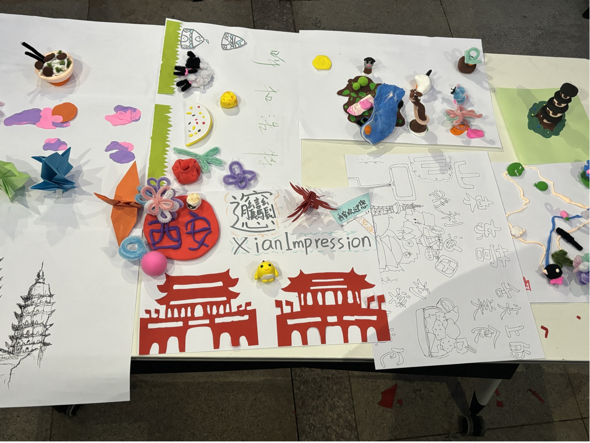 活动过程同学们依据黄河流域上游中游下游分区自主组队,各队领取不同流域板块。明确创作要求后,各小组用黏土、卡纸、扭扭棒等材料动手创作。将黄河流域地形、风景、风土人情融入作品,展现了对黄河文化的热爱与敬畏。