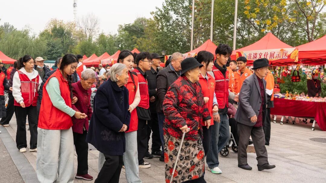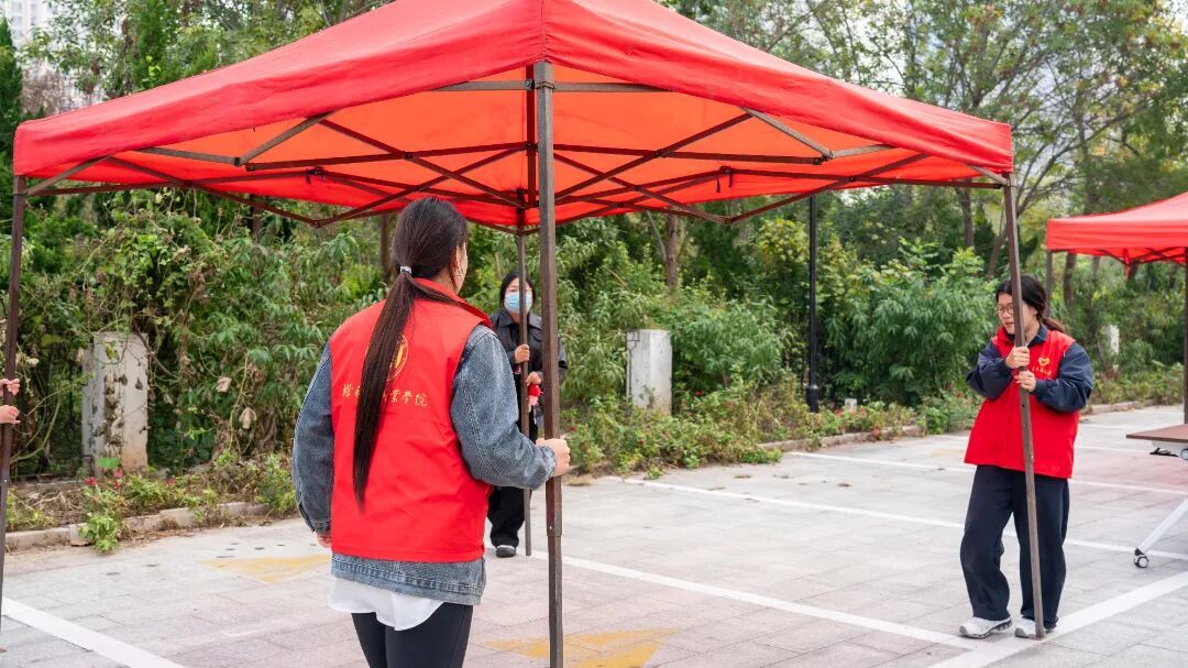 活动当天,志愿者们提前抵达现场,迅速投入筹备工作。大家以“分工协作、高效执行”为原则,一部分志愿者合力搬运桌椅、搭建活动棚子,另一部分志愿者协助工作人员准备活动物品,将东科学子严谨务实的专业素养融入志愿服务的每一个环节。志愿者们又贴心护送行动不便的老人抵达活动现场,介绍活动内容,用耐心与热情赢得现场人员的一致称赞。