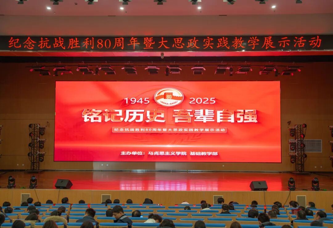为纪念中国人民抗日战争暨世界反法西斯战争胜利80周年,推动思政教育创新落地,12月8日,我校举办“大思政课”实践教学展示活动。校领导班子成员出席活动,各二级学院书记、院长、辅导员全程参与,600余名学生代表到场观看。活动以“烽火记忆—不屈抗争—精神传承—青春担当”为脉络,串联情景诗朗诵、舞蹈、舞台剧等11个不同类型节目,200余名学子参演,将烽火岁月的悲壮历史与当代青年的使命担当深度融合,通过沉浸式艺术展演打造“走心”思政课堂,让红色精神在青春力量的诠释中焕发新生。