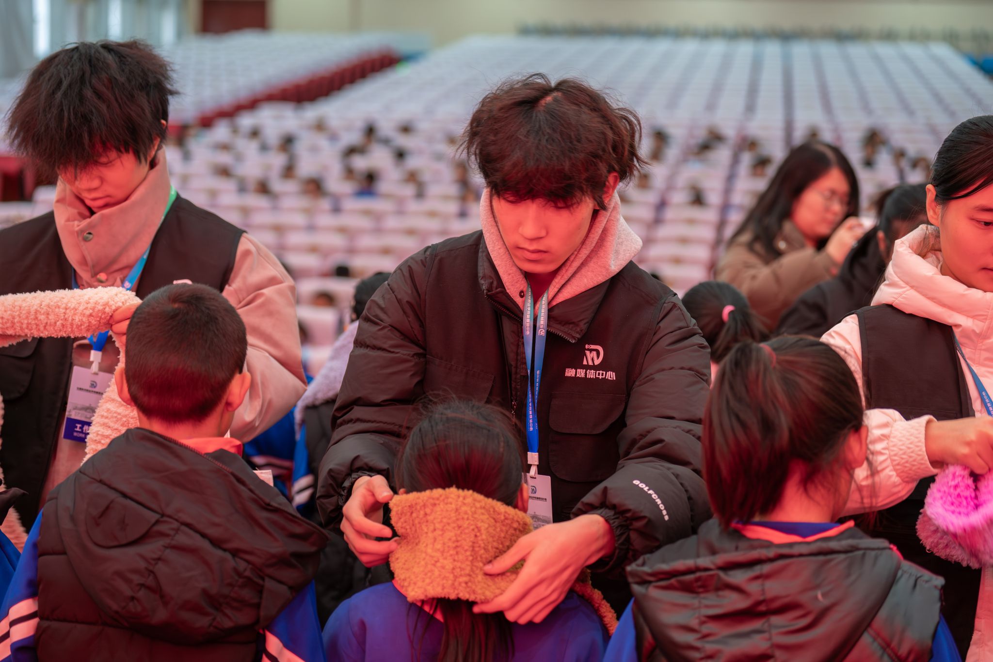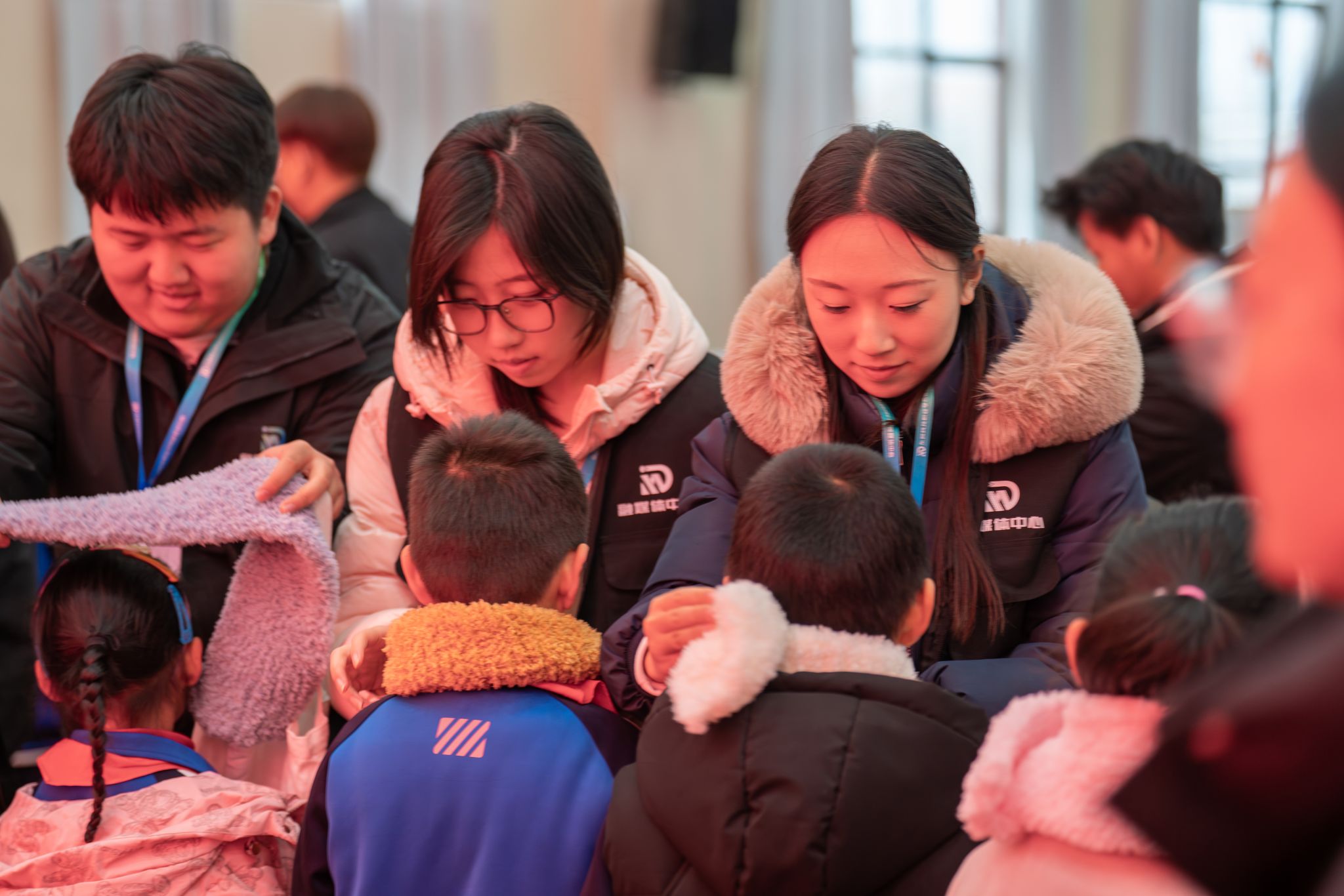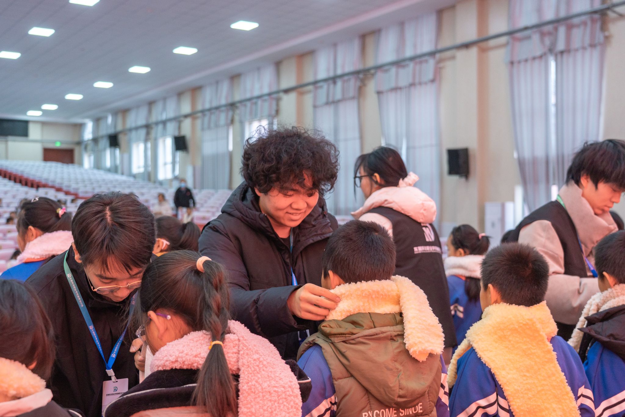 一箱箱精心准备的爱心物资整齐陈列,成为冬日校园里最动人的风景。志愿者们满怀热情,亲手为孩子们系上柔软温暖的围巾,耐心讲解手绘帆布包的设计理念,并将崭新的文具逐一送到孩子们的手中。志愿者们忙碌的身影与孩子们纯真的笑脸相互辉映,让所有的奔波与付出都有了最温暖的回应。