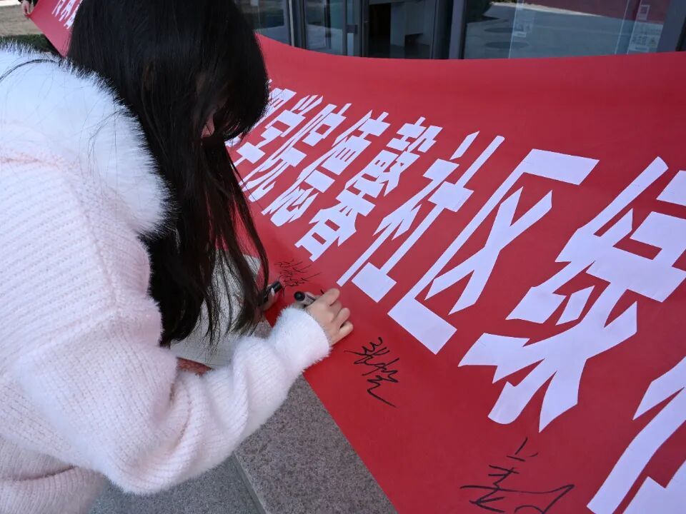 各学院志愿服务队还纷纷走出校园,深入社区、公园,用实际行动守护绿色家园。航空与旅游学院志愿者前往广饶县五村遗址公园,手提水桶为树木浇水松土,精心绘制并悬挂文明提示牌,引导市民共同守护城市绿肺;教师教育学院志愿服务队走进顺安社区大海丽苑小区,亲手制作环保绿植树签为绿植挂上专属“身份牌”,与社区工作人员携手开展绿植养护、环境清理工作,清理杂草、维护绿地,让社区环境更加整洁美观;汽车工程学院走进孙子文化园,师生共同参与植树、培土、浇水等环节,以实际行动美化环境。大家分工协作,认真完成每一步操作,现场氛围热烈。此次活动不仅让学生亲近自然、体验劳动乐趣,更以实践育人方式深化生态文明教育,引导青年以行动守护绿色家园。春寒料峭中,志愿者们的身影成为春日里一道道靓丽的风景线,用实干诠释青年担当。