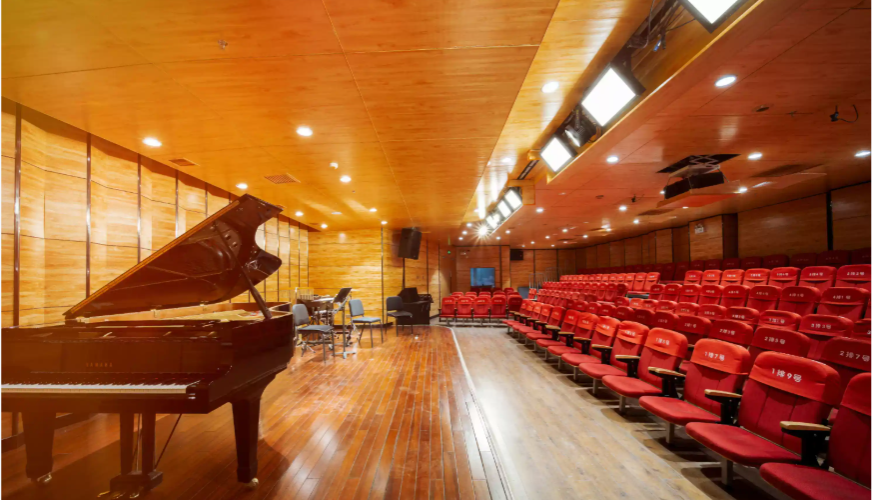 1.舞台演艺实训场景:建设1:1还原专业剧场的多功能演艺实训厅,配备专业灯光、音响、LED大屏、升降舞台、合唱台架,复刻商业演出、文艺晚会、合唱比赛全流程,学生完成从节目编排、舞台走位、现场演唱到演出统筹的全岗位实操。