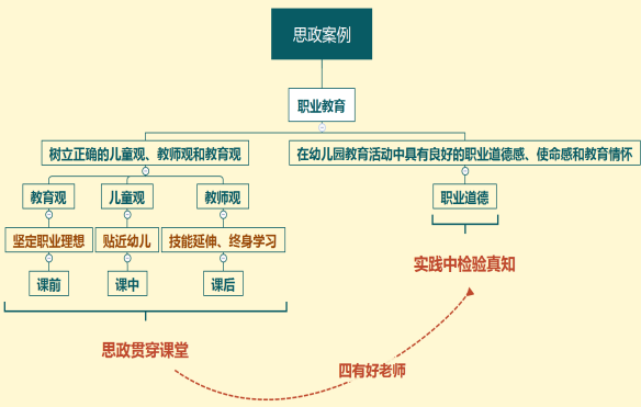 学前教育专业在制定课程教学目标时,科学、系统、有效地融入课程思政理念,既重视对学生专业技能的提升,又重视发挥课程思政在提升学生职业道德、教育情怀、艺术审美能力、专业实践能力等方面的引领作用,将爱岗敬业、美育、工匠精神、爱国精神、文化自信、创新精神等社会主义核心价值观融入到教书育人全过程。遵循幼儿身心发展特点,将童心、耐心、细心、爱心、精心、责任心等融入其中,培养学生尊重儿童、科学教育的态度。