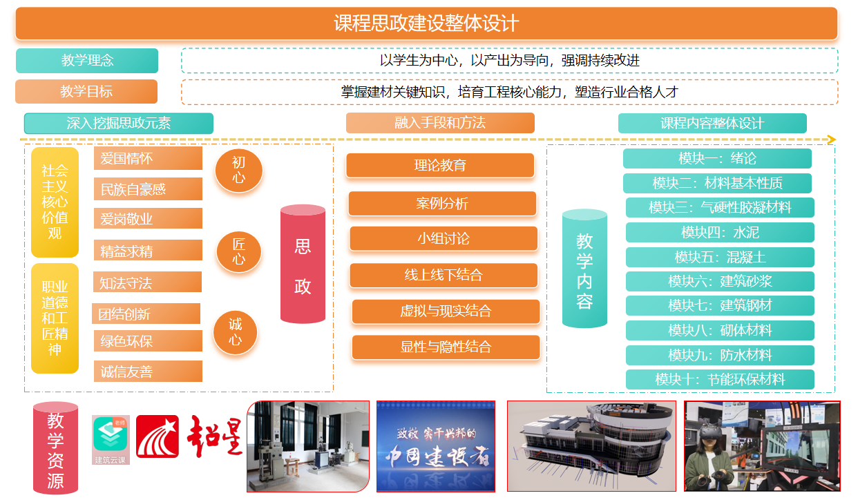 建筑工程材料课程已根据思政教育的要求进行了重新设计,将社会主义核心价值观、文化自信等理念融入课程内容中。在传授建筑材料专业知识的同时,融入爱国、敬业、诚信、友善的社会主义核心价值观。例如,在介绍建筑材料的发展历程时,可以强调国内建筑材料行业的自主创新和技术进步,激发学生的爱国情怀和民族自豪感。