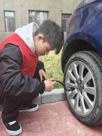 值得关注的是,本次市集特别增设车辆安全胎压检测的公益项目,为居民的私家车、电动车提供免费胎压检测、气压调节及安全排查服务。志愿者们耐心细致地为每一位车主检查车况,细致讲解日常车辆养护知识与出行安全要点,提醒居民关注轮胎状态,及时消除安全隐患,用专业服务为居民出行保驾护航,展现了汽车工程学院学子的专业素养与责任担当。