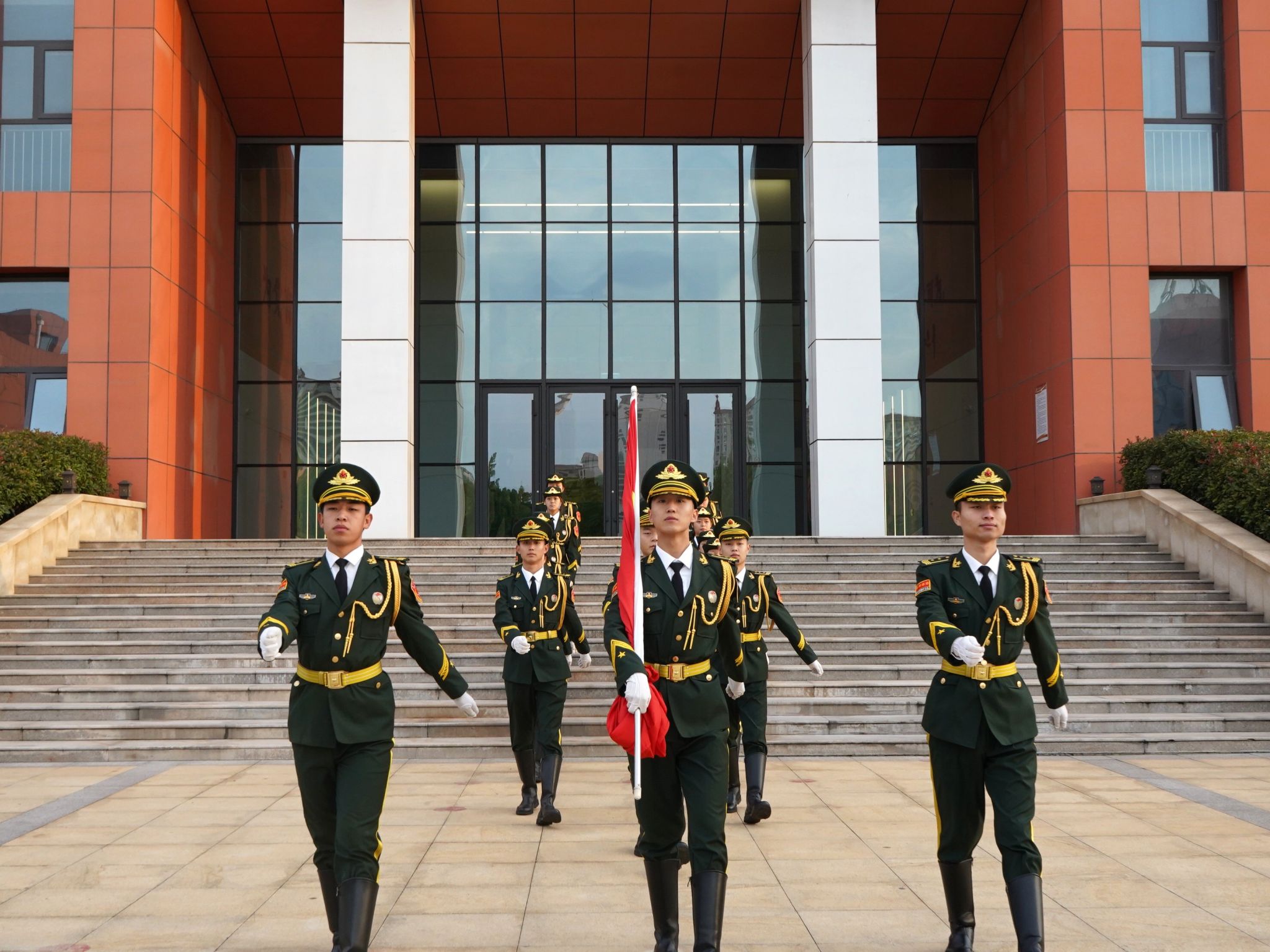 伴随雄壮激昂的《义勇军进行曲》,五星红旗冉冉升起,师生肃立注目,高唱国歌,现场氛围庄重而肃穆。