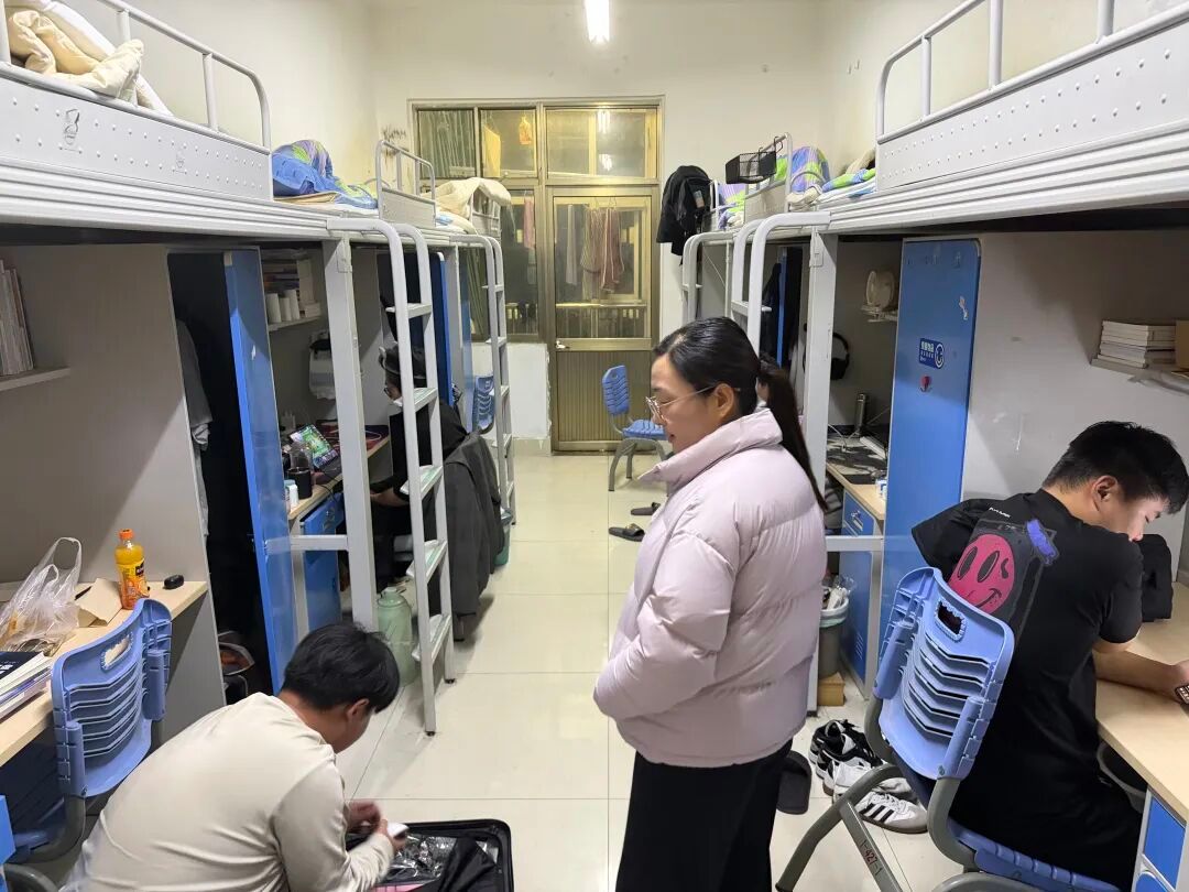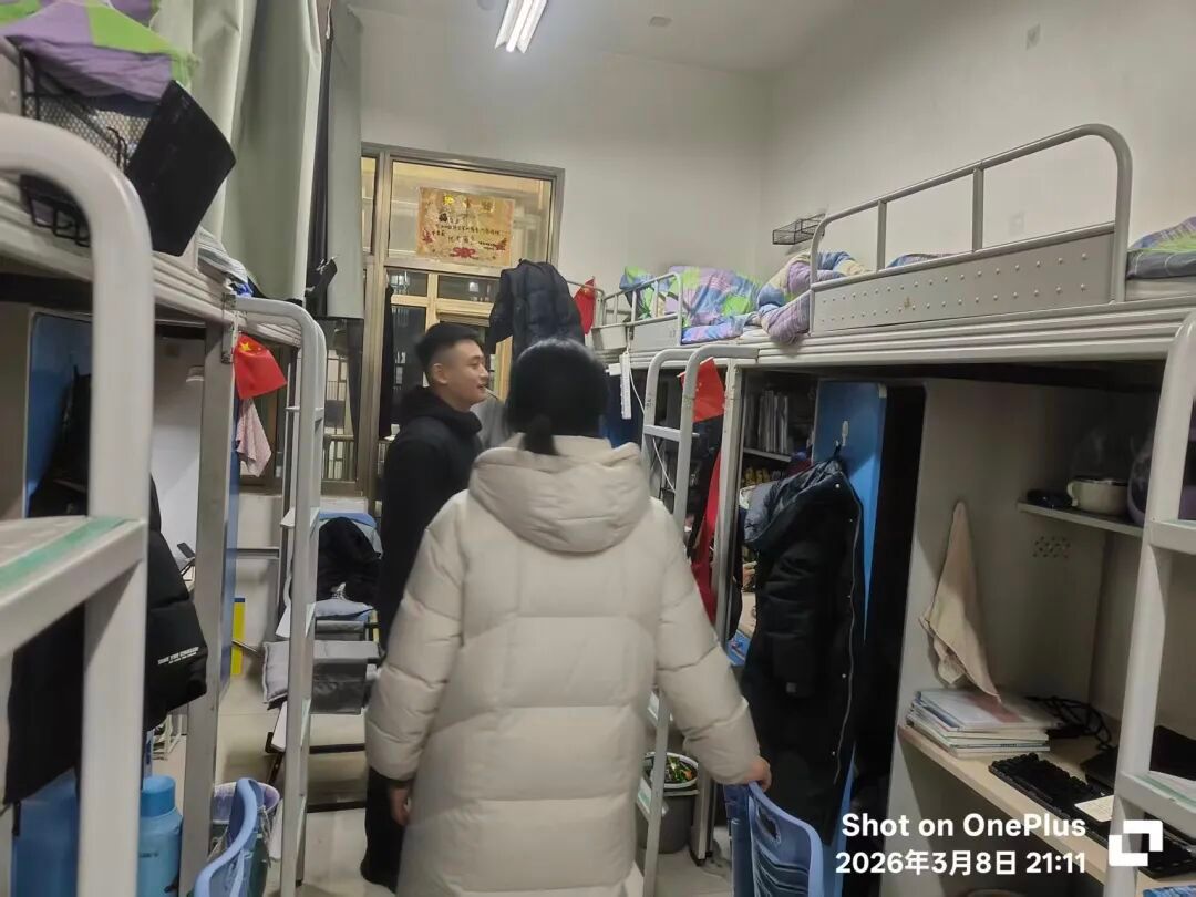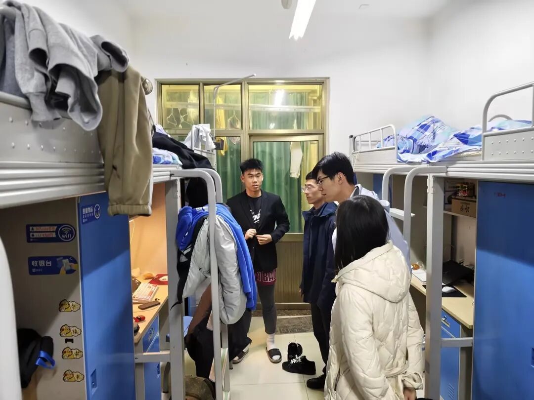 学院领导、辅导员、班主任组成走访小组,开展宿舍夜间走访活动,实现全院学生宿舍全覆盖。走访过程中,老师们与学生亲切交谈,细致了解学生返校后的生活状态、思想动态和实际需求,耐心解答学业困惑、宿舍管理等相关问题,叮嘱学生注意用电安全、消防安全,合理安排作息、规律饮食,主动关注自身心理健康,遇到困难及时向老师求助。此次走访既排查了宿舍内违规电器等安全隐患,也拉近了师生距离,让学生感受到学院的关怀与温暖,助力学生快速适应新学期校园生活。