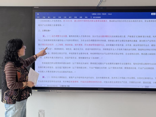 教学院长带领全体教师集中学习《教育部关于深化职业教育教学关键要素改革的意见》(教职成〔2026〕1号),深入领会专业、课程、教材、教师、实习实训五大教学关键要素联动改革的核心要求,详细解读学校教学工作运行表,明确各教学环节的时间节点、责任分工及考核标准,要求全体教师将职教改革深度融入日常教学全过程,严格规范教学流程,切实保障新学期教学工作有序、高效、规范开展。
