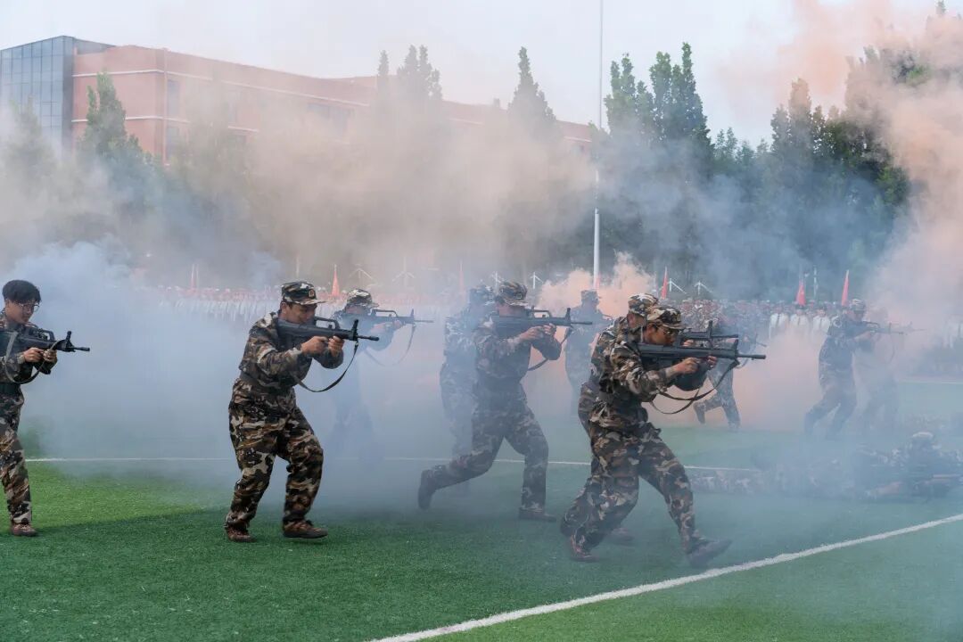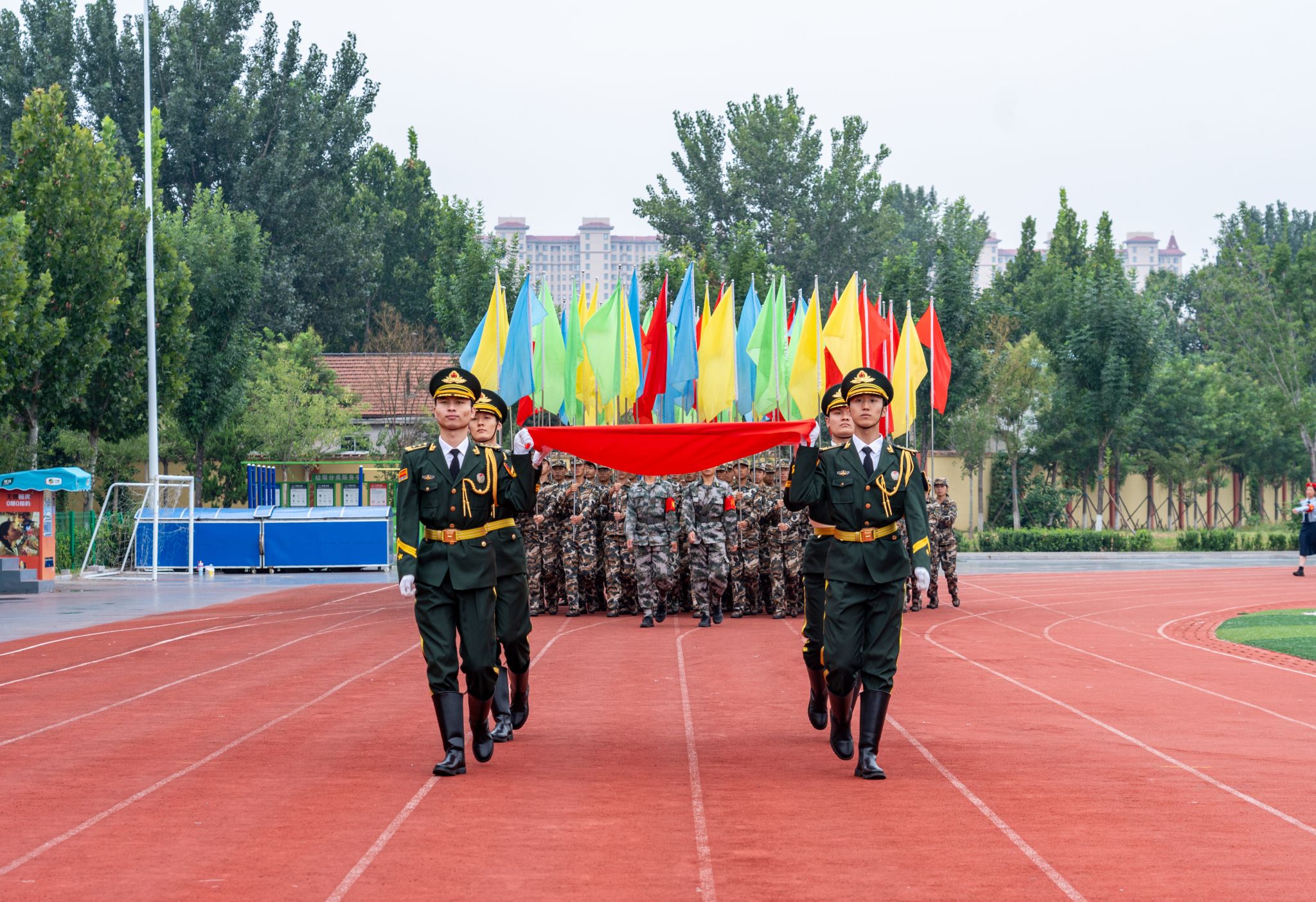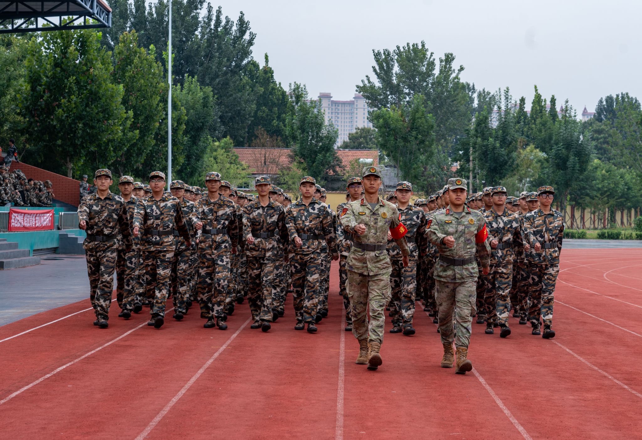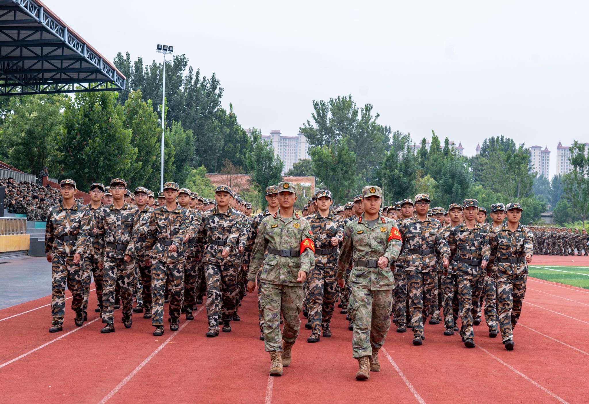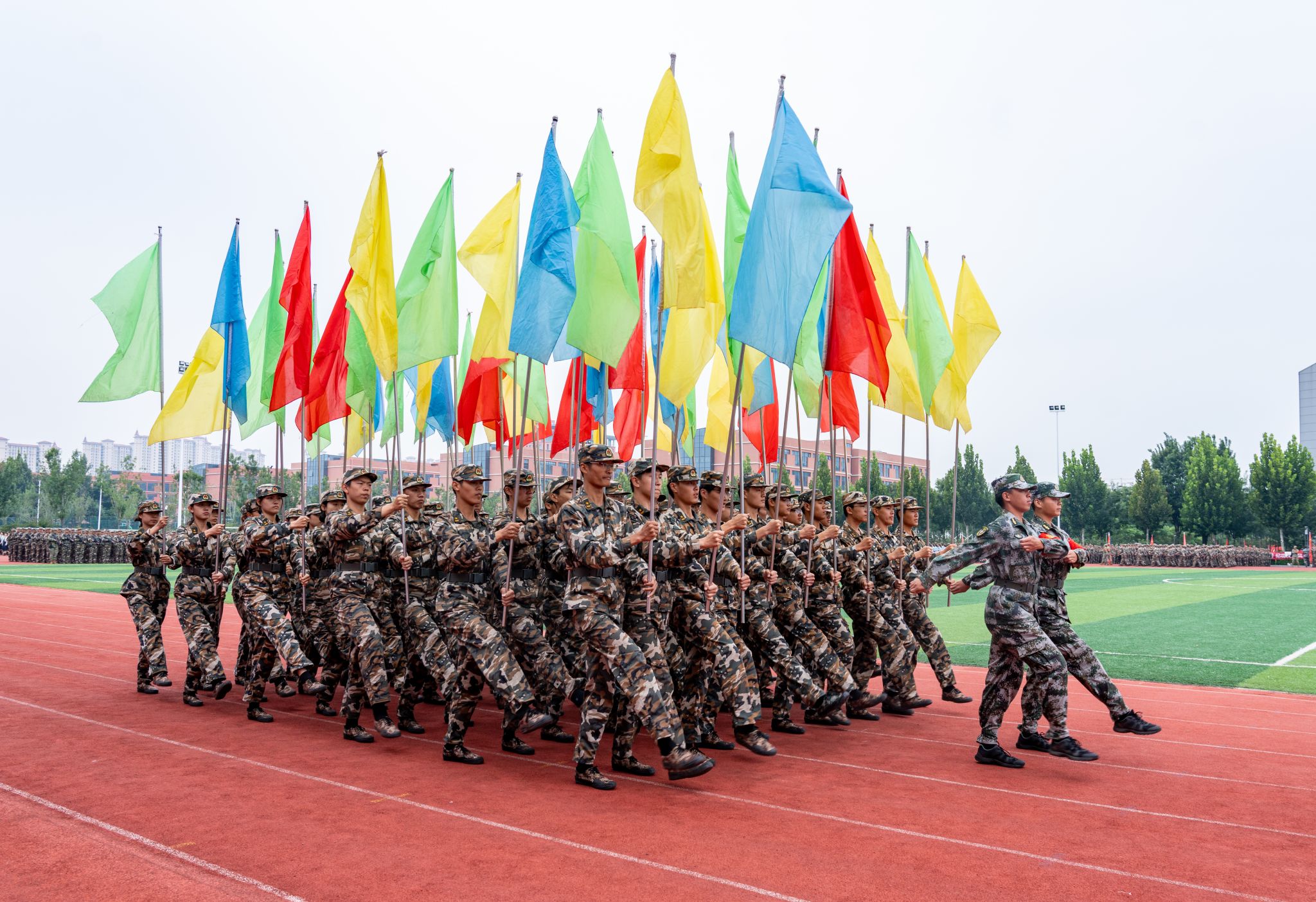 大会在庄严的国歌声中拉开帷幕,全体师生齐唱国歌。身着军训服的新生们军容严整,阵列齐肃。他们以坚定的目光、挺拔的军姿和饱满的激情,从容走过主席台,展示了为期数日的军事训练风采与成果。