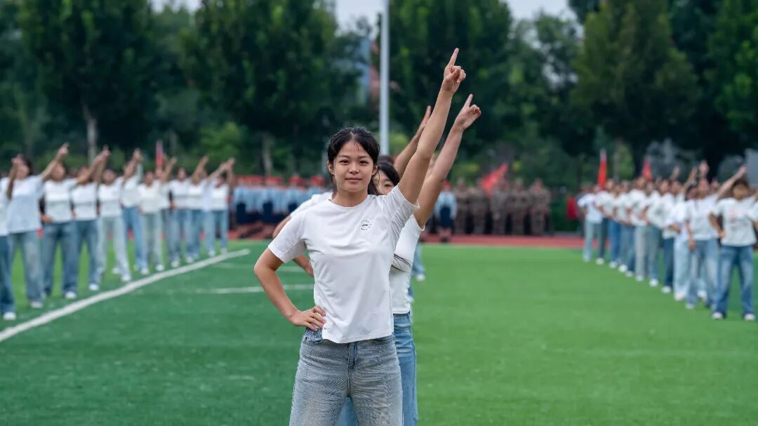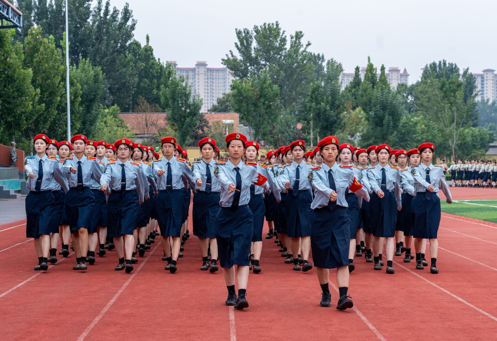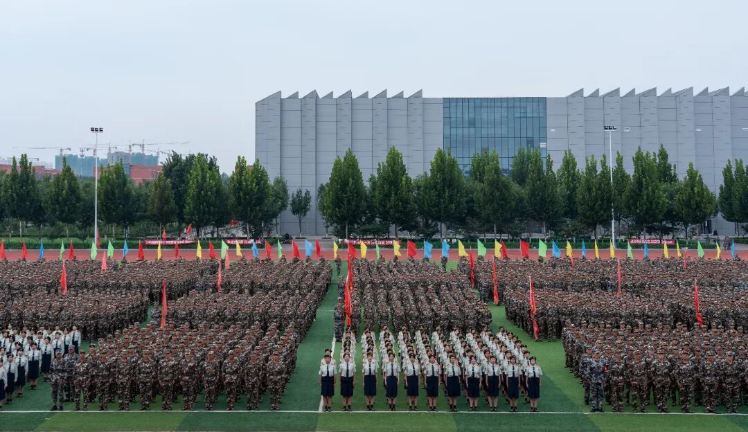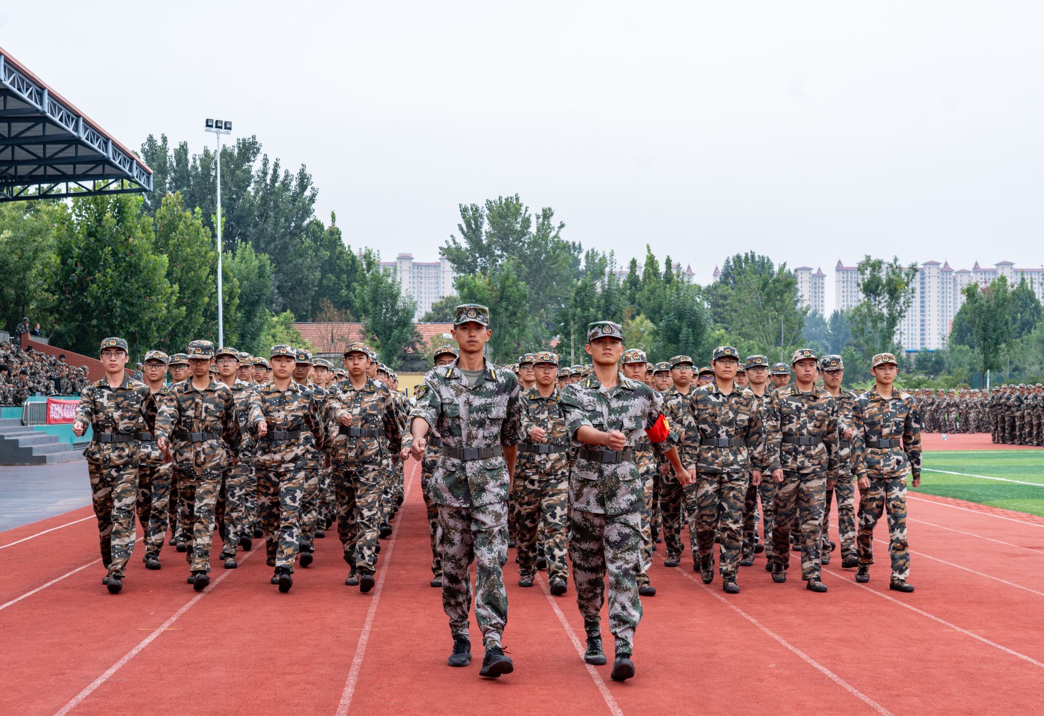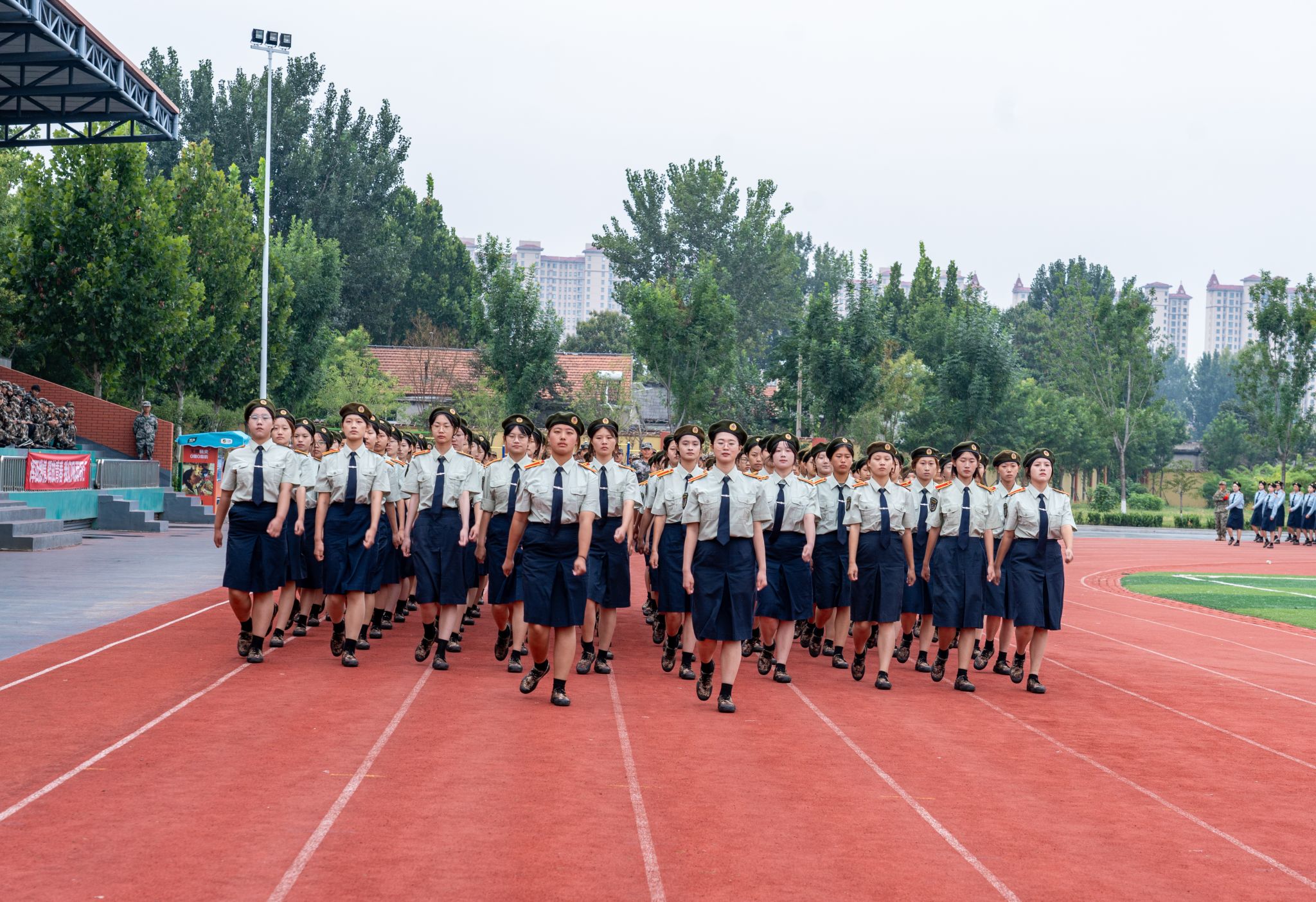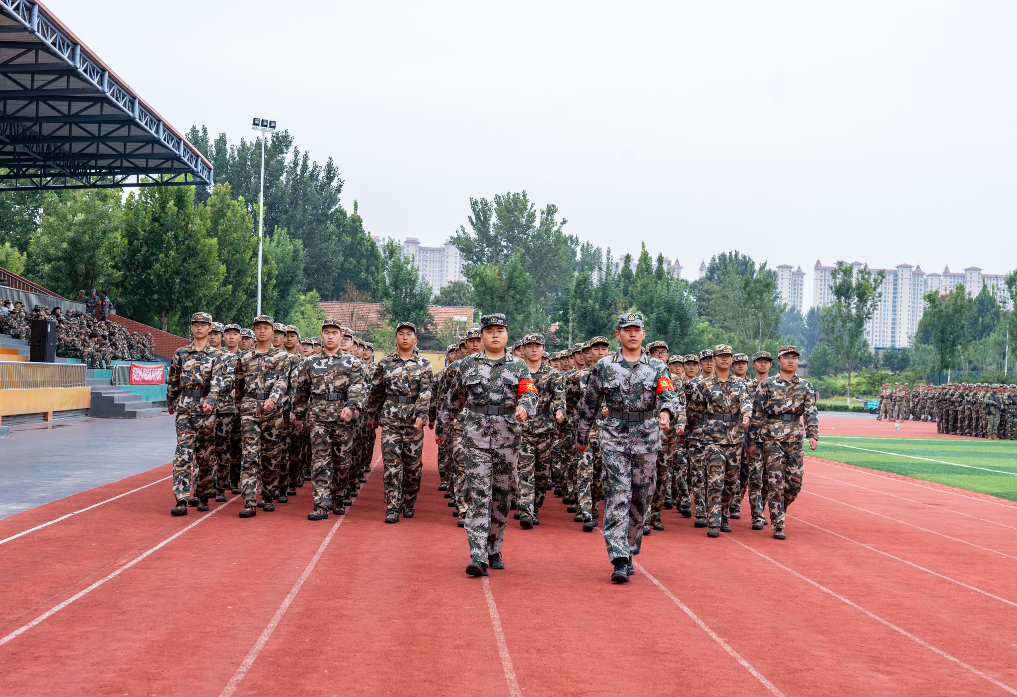 大会在庄严的国歌声中拉开帷幕,全体师生齐唱国歌。身着军训服的新生们军容严整,阵列齐肃。他们以坚定的目光、挺拔的军姿和饱满的激情,从容走过主席台,展示了为期数日的军事训练风采与成果。