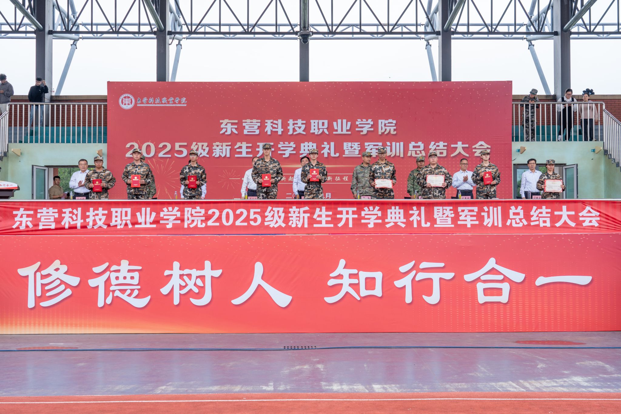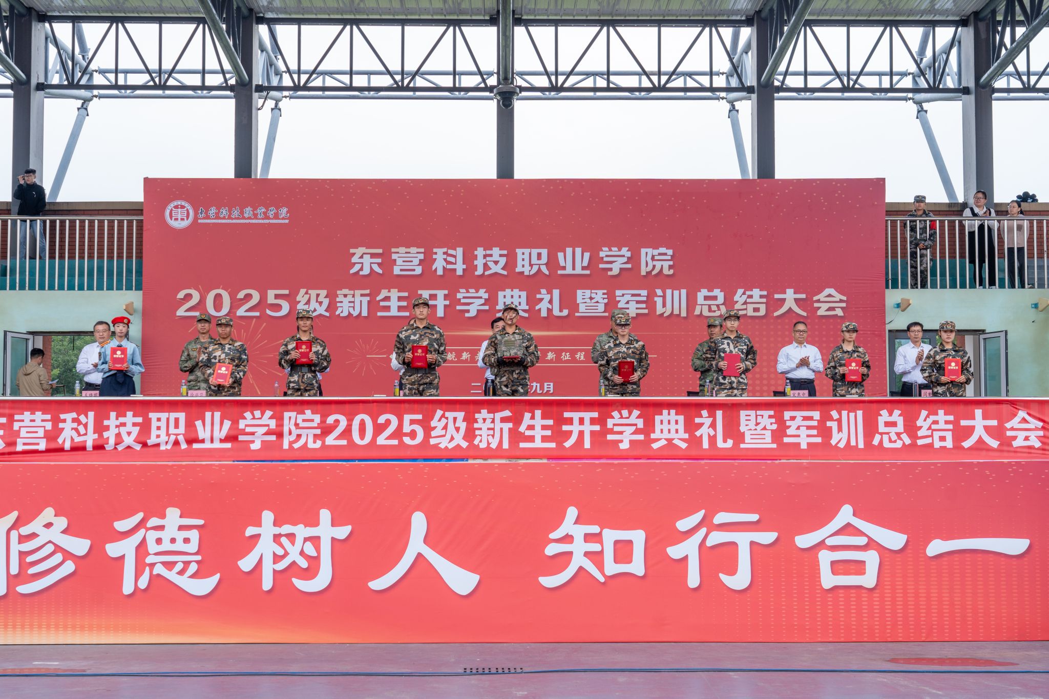 会上,学校党委委员、副校长徐兴习宣读了《东营科技职业学院关于表扬2025级新生军训先进集体和先进个人的决定》;与会领导为受表扬的单位和个人颁奖;成永江校长为广饶县人民武装部授予锦旗;2025级新生代表、2024级学生代表、教师代表依次上台作了发言。