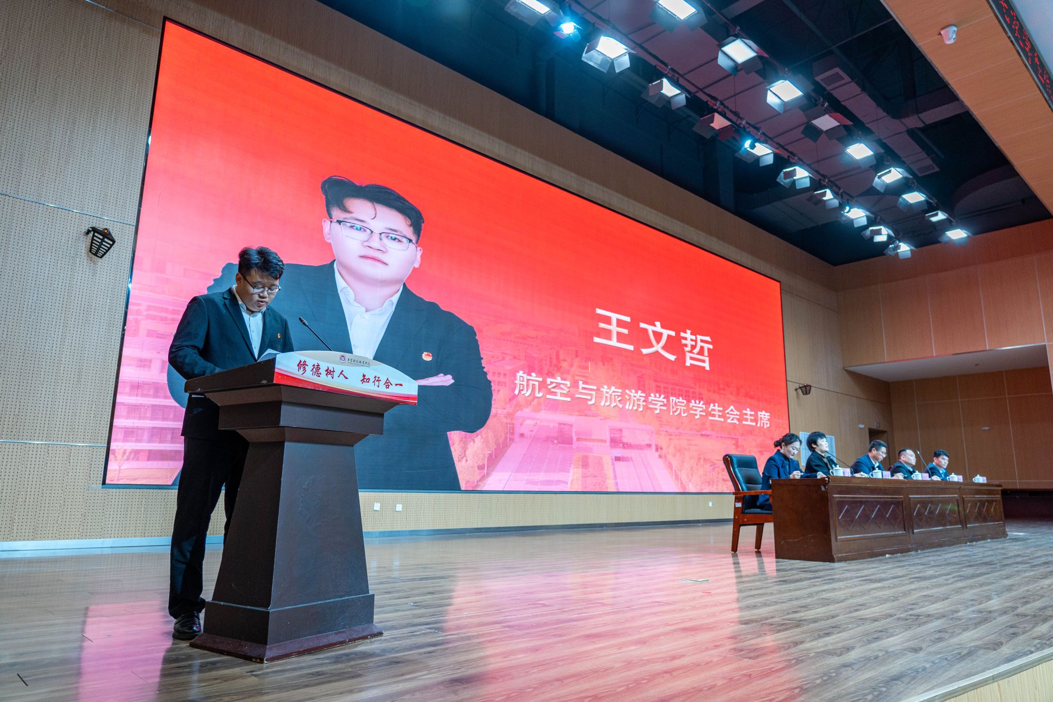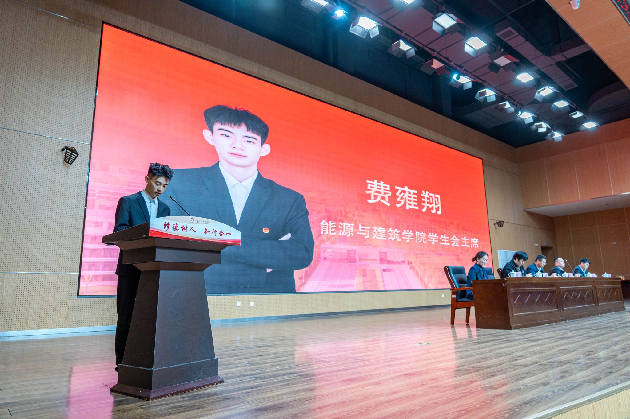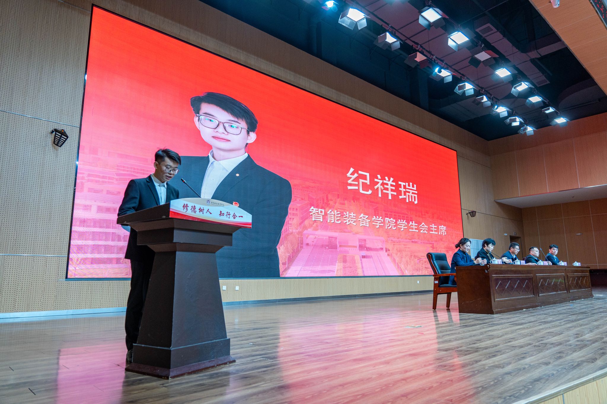 第二十二届学生会主席团成员奚萌娅作了题为《坚定不移跟党走以奋斗姿态担时代使命汇聚青年力量书写崭新篇章》的学生会工作报告。