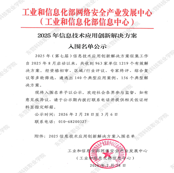 近日,工业和信息化部网络安全产业发展中心(工业和信息化部信息中心)发布《2025年信息技术应用创新解决方案入围名单公示》,东营科技职业学院联合山东思言科技有限公司申报的“基于麒麟工坊高职信息技术应用创新人才培养实训解决方案” 成功入选全国典型应用案例,标志着学校在信息技术应用创新人才培养领域的实践成果获得国家级认可。