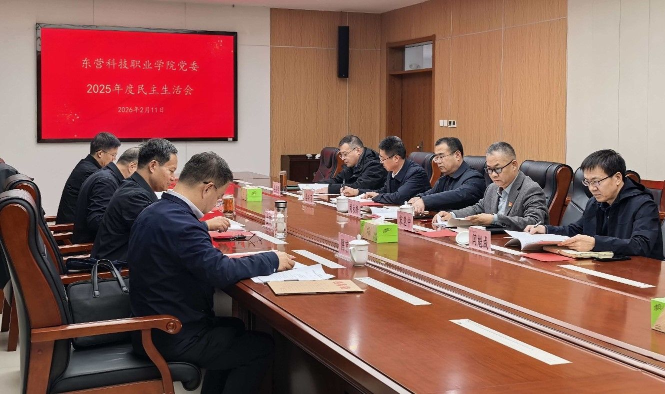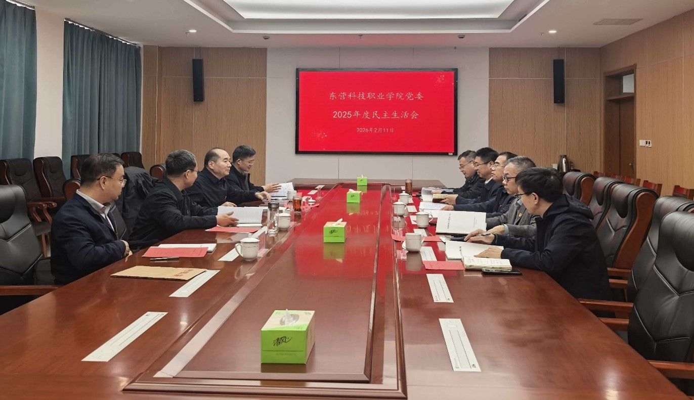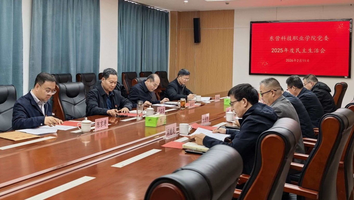 按照市纪委机关、市委组织部和市委教育工委部署,2月11日,东营科技职业学院党委召开2025年度领导班子民主生活会。市教科院正县级干部孟昭亮同志、市教育装备发展保障中心主任陈京涛同志到会指导,党委副书记、校长成永江主持会议并作总结讲话。