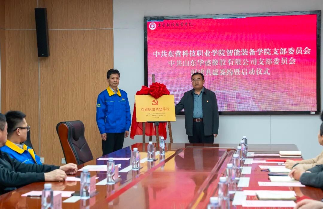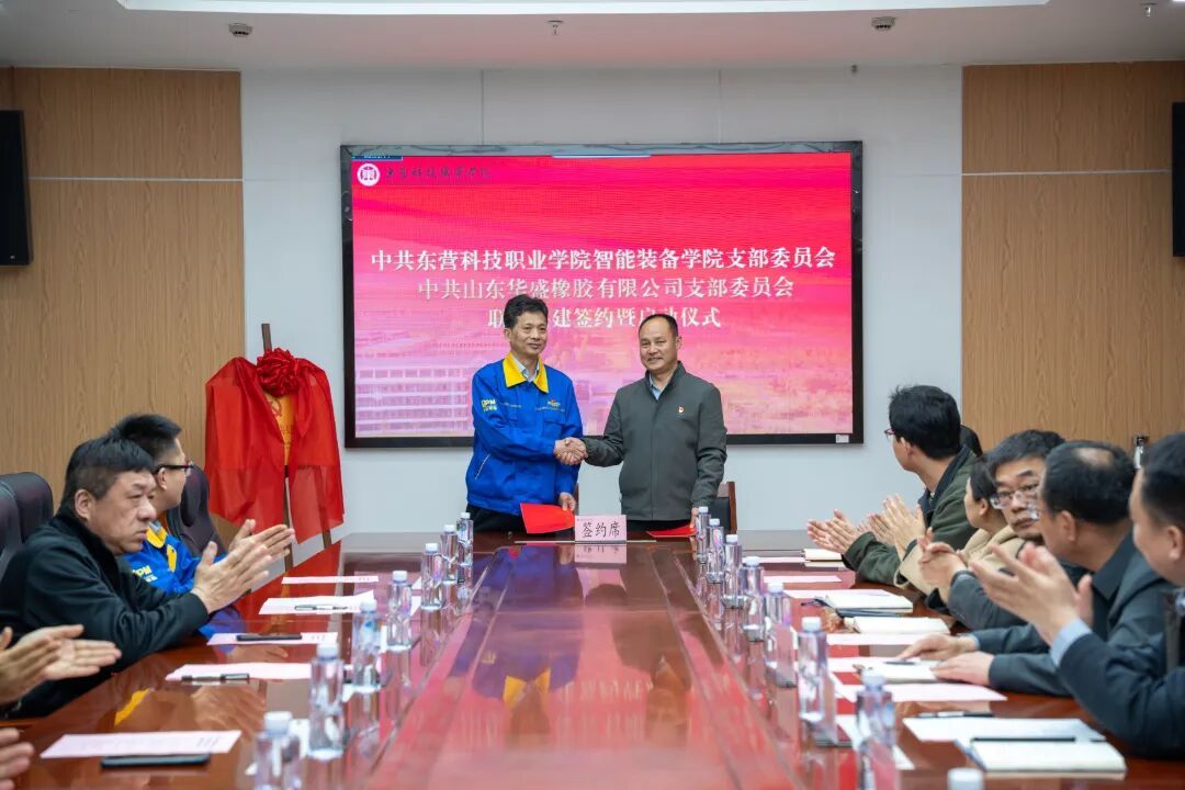3月30日,学校智能装备学院党支部与山东华盛橡胶有限公司党支部联建共建签约暨启动仪式在我校图书办公楼第一会议室举行。山东华盛橡胶有限公司副总经理、党支部书记宋士文,我校党委委员、副校长刘永锋出席活动。活动由党委组织部部长徐科春主持。